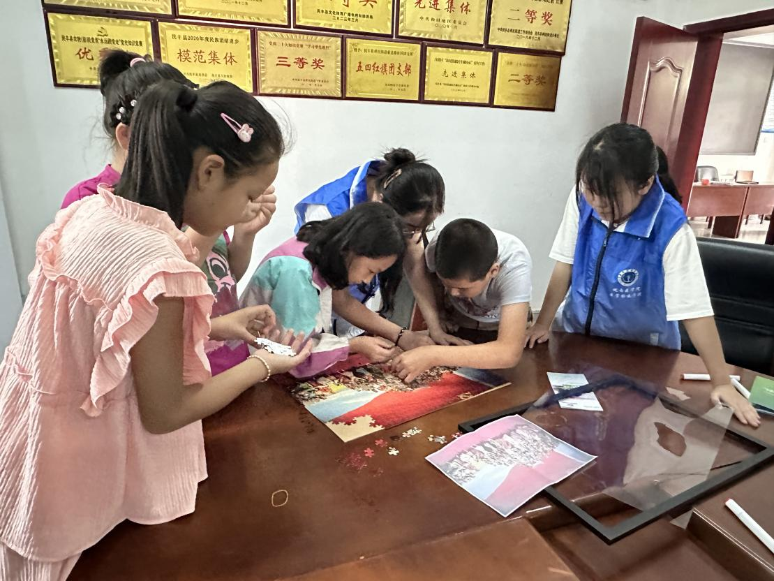 新疆地区志愿者带领小朋友拼图